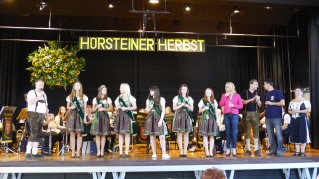 Abbildung: 40. Hörsteiner Herbstkönigin ist: - Svenja Otter-Krohnen. Ihr zur Seite stehen links 1.Prinzessin Laura Barnetzki und rechts 2. Prinzessin Theresa Hasenstab.